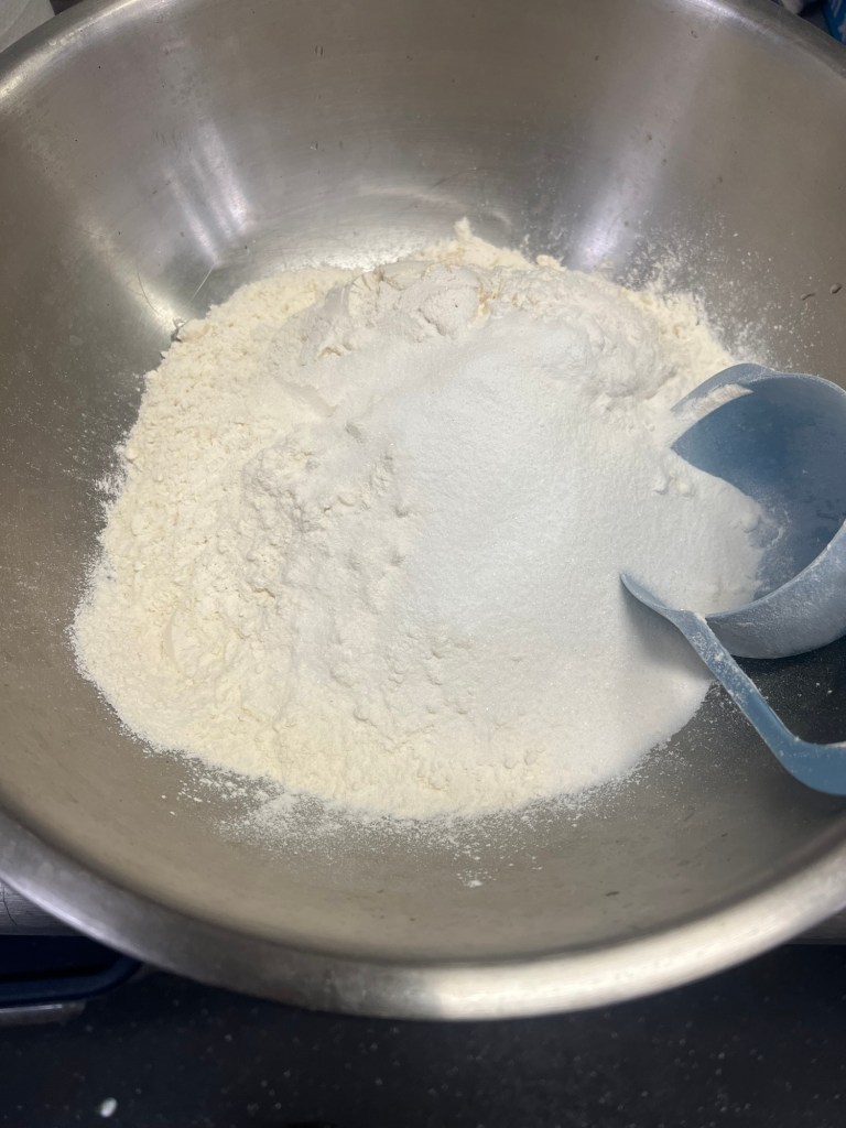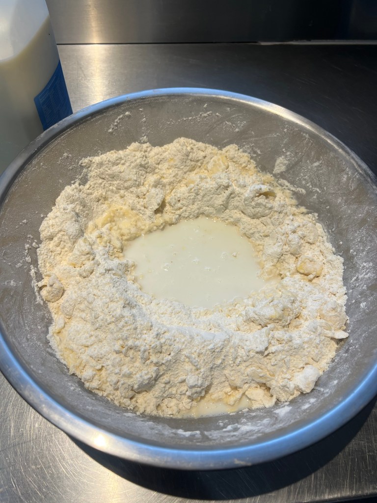 Step 3 — Make a well in the centre and pour in the cream and lemonade. Mix together until just combined — do not overwork the dough or your scones will be tough and heavy. You want it to just come together. Form into a ball and let it rest for 30 minutes.