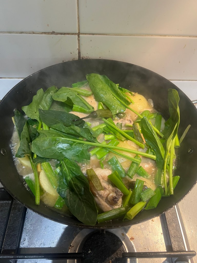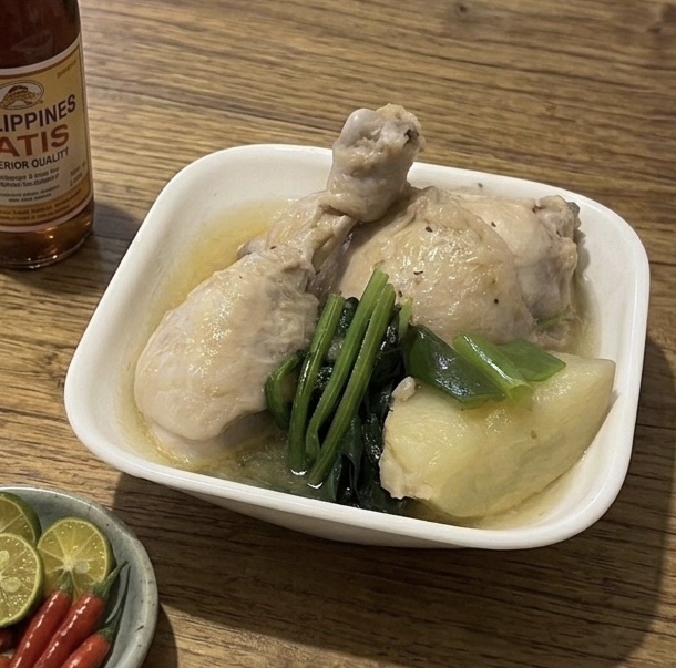 *If you can get a kampong or boiler chicken, use it. The flavour of the broth will be on another level entirely. And the patis is non-negotiable — it is the soul of this dish. Also if you find green papaya it is a lot better than potatoes.